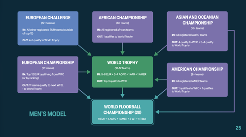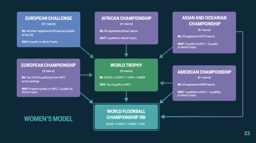 Med kontinentala mästerskap skapas nya turneringar där vinnare kan koras i Europa, Asien-Oceanien, Amerika och Afrika. Även det nya Continental Challenge ger en möjlighet för lag som inte kvalificerar sig till de kontinentala mästerskapen att spela om en titel. För Sveriges del blir det kontinentala mästerskapet EM som kommer att spelas vart fjärde år.