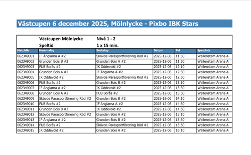 ANMÄLAN TILL VÄSTCUPEN DEN 6 DECEMBER 2025